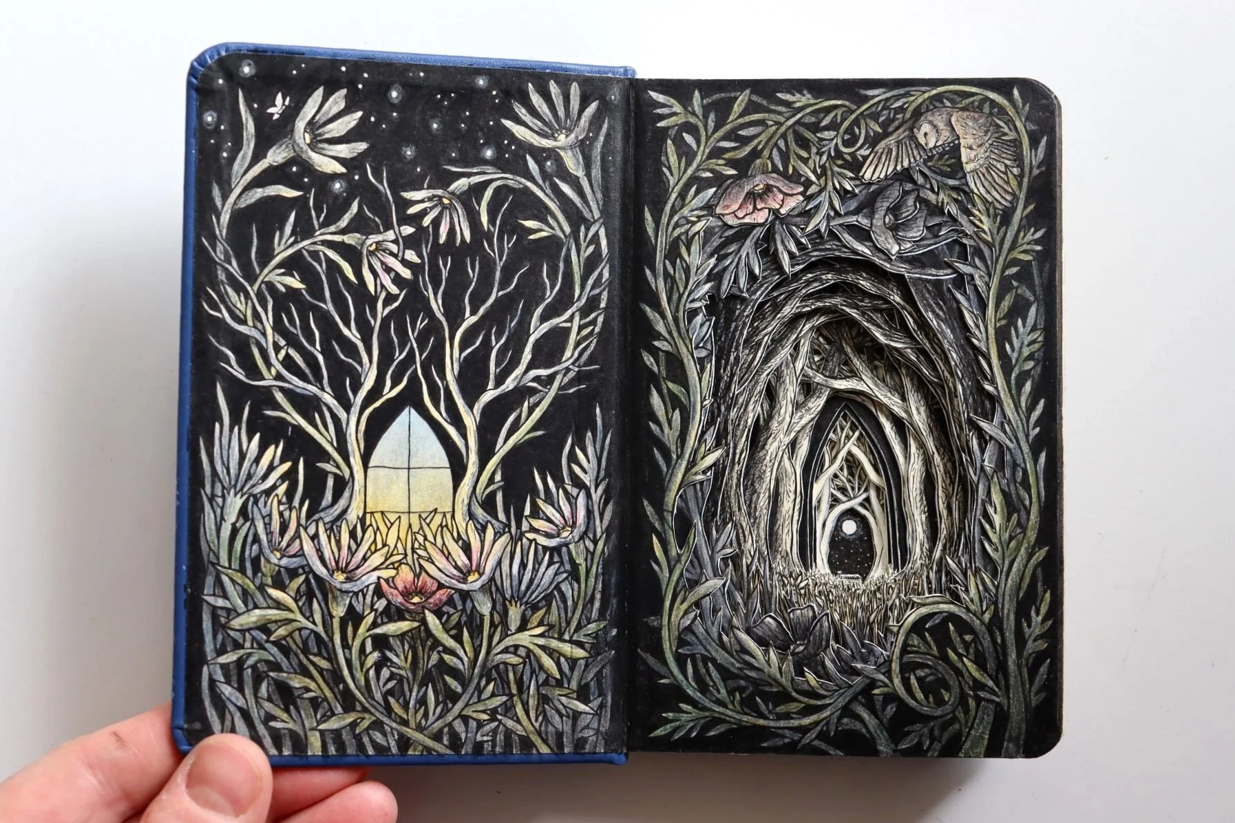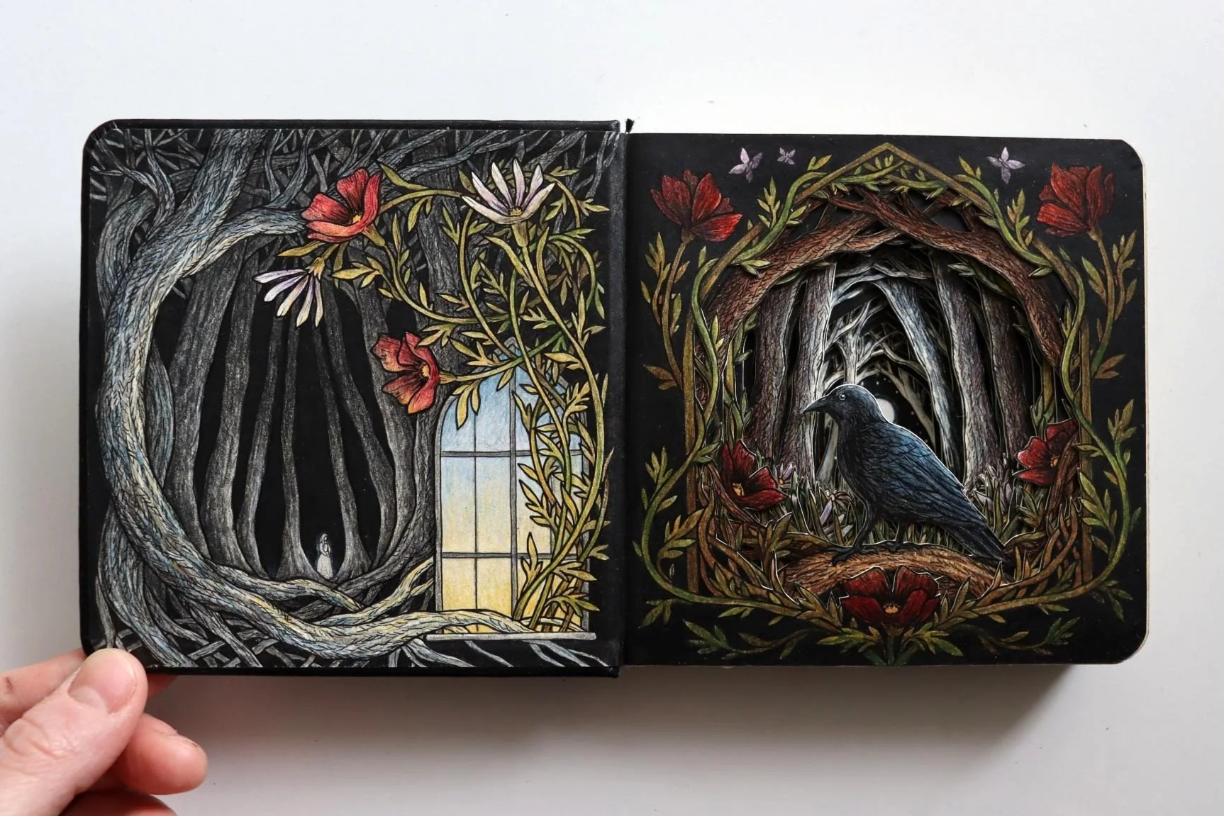 A Window Into is a nod to the term “window into the soul”, and an invitation to look inward. The windows and arches in these pieces are used to symbolise a transition between inner and outer world. The dark forests - a place to stand and gaze into the unknown. The birds in flight, the light, the shadows - change, the dance between joy and pain, and the quiet of memory and dreams.